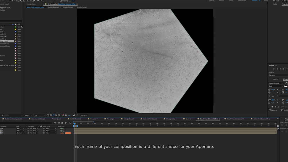 To gain complete creative control over the creation of your aperture maps and bokeh, this product includes the Bokeh Builder .aep setup.