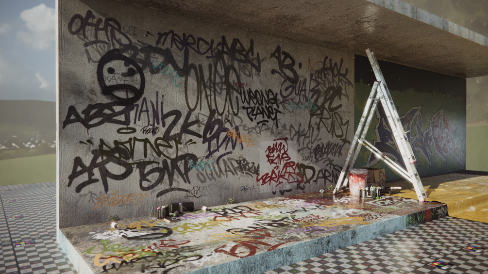 Use real Graffiti tags to add realism and texture to 3D rendered environments and scenes.